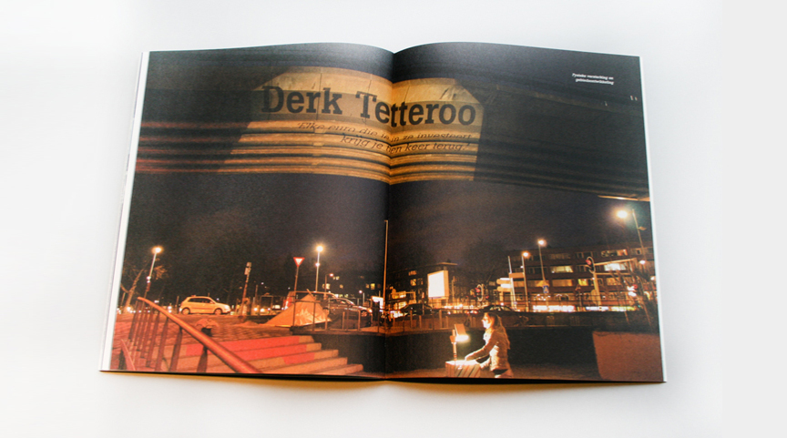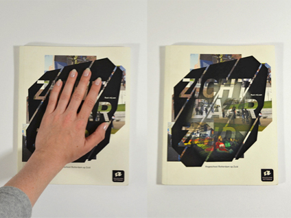 Een publicatie gemaakt in opdracht van Hogeschool Rotterdam en Pact op Zuid samen met vier andere studenten. De publicatie gaat over projecten die plaatsvinden in Rotterdam Zuid. Zichtbaar maken is het thema dat we hebben doorgetrokken zowel in de fotografie en vormgeving. Samen met een zelfgemaakt kar en een overhead projector hebben we verschillende lokaties belicht. De cover van de publicatie is voorzien van warmte gevoelige inkt. Door te wrijven wordt het volledige beeld zichtbaar.